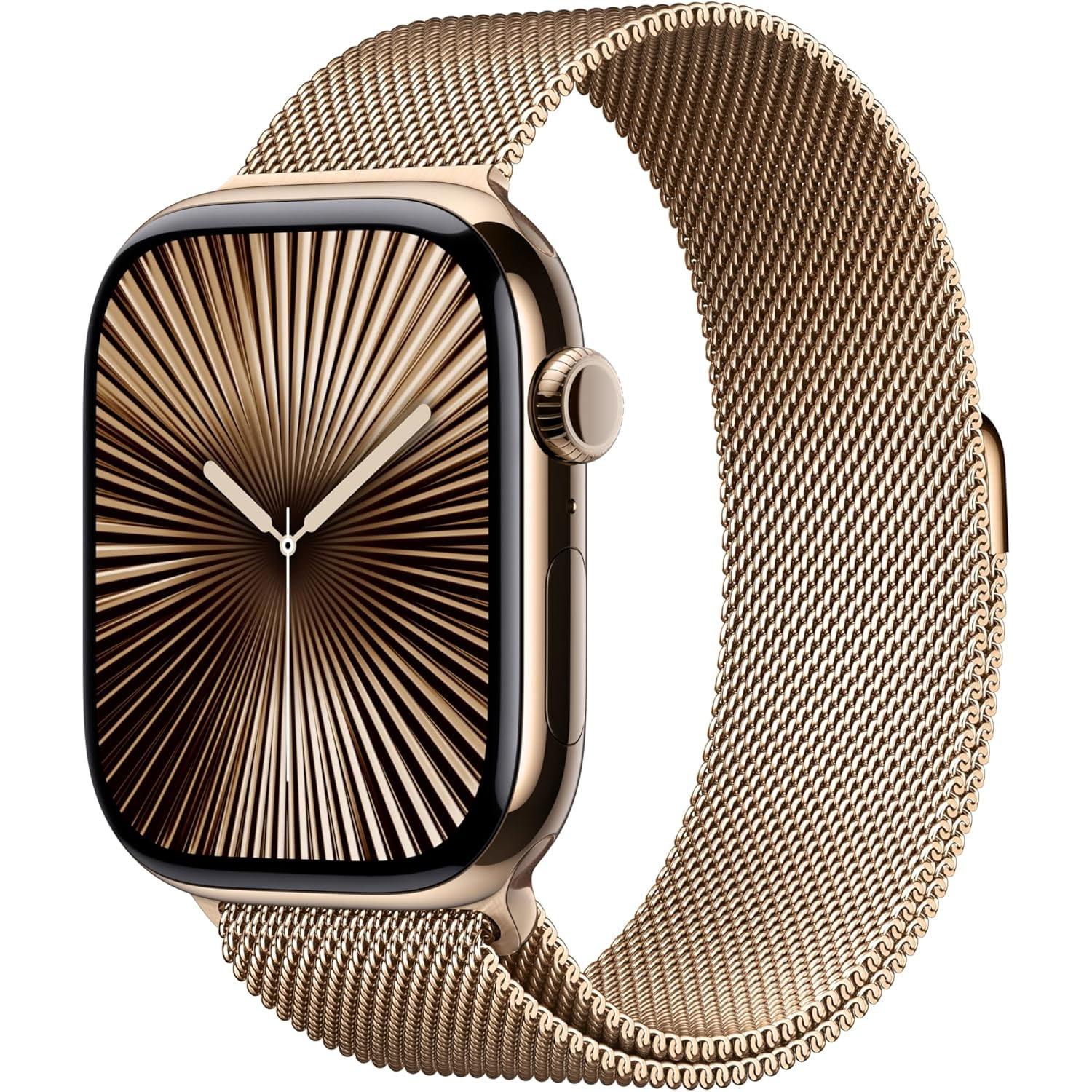 Amazon is offering the Apple Watch Series 10 [GPS + Cellular 46mm case] Smartwatch with Gold Titanium Case with Gold Milanese Loop - M/L. Fitness Tracker, ECG App, Always-On Retina Display, Carbon Neutral for the best deal.