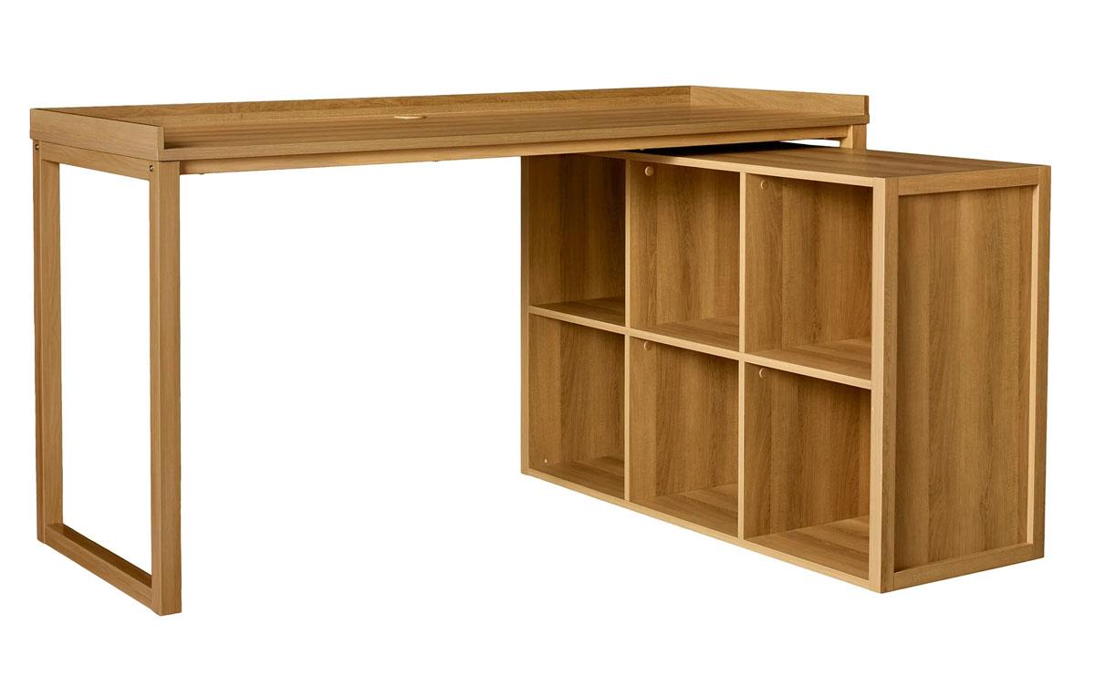 Walmart is offering the Better Homes & Gardens Ezra Modular L Desk with 6-Cube Storage, Light Honey Finish for the best deal.