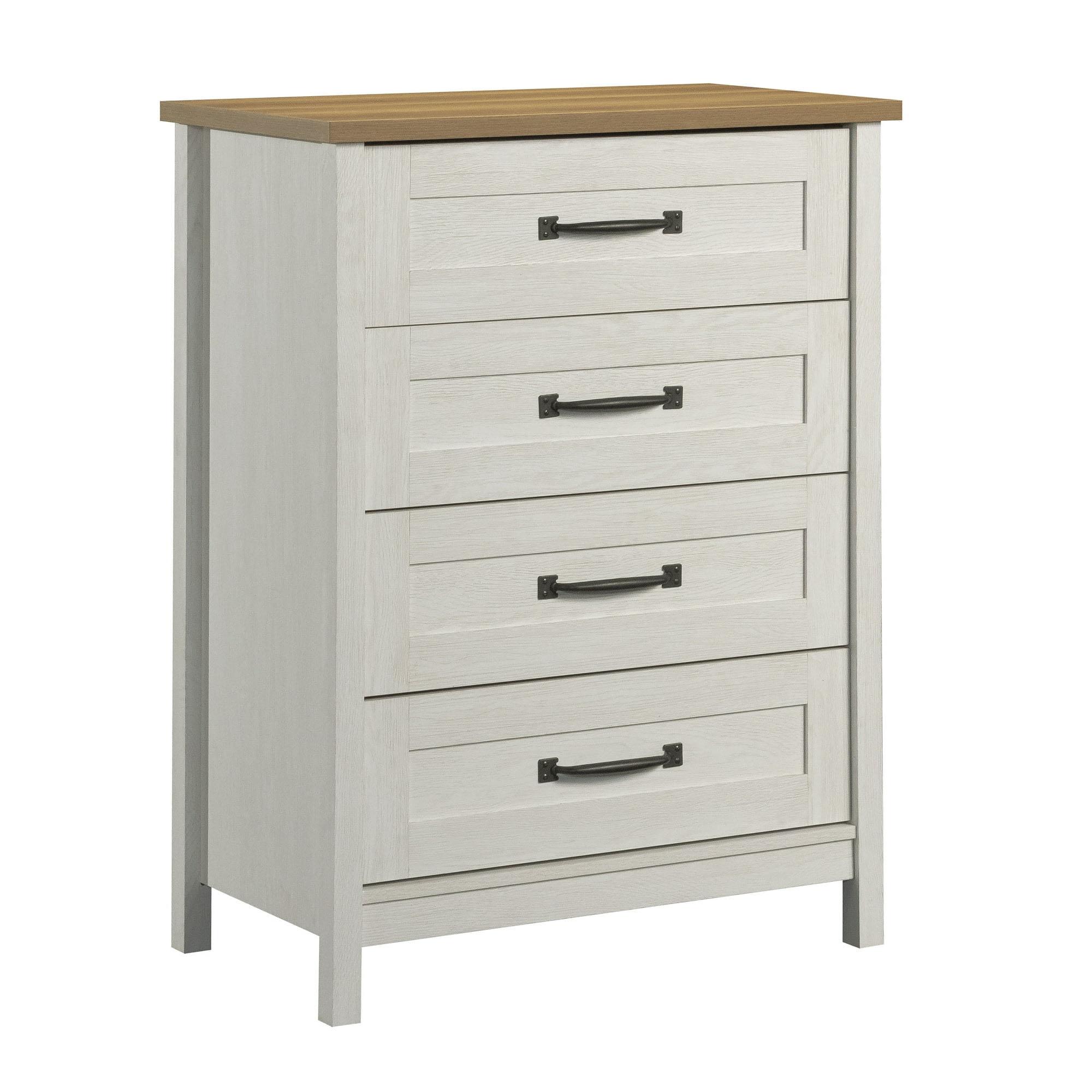 Walmart is offering the Better Homes & Gardens Modern Farmhouse 4-Drawer Dresser, Alabaster and Light Honey Finish for the best deal.