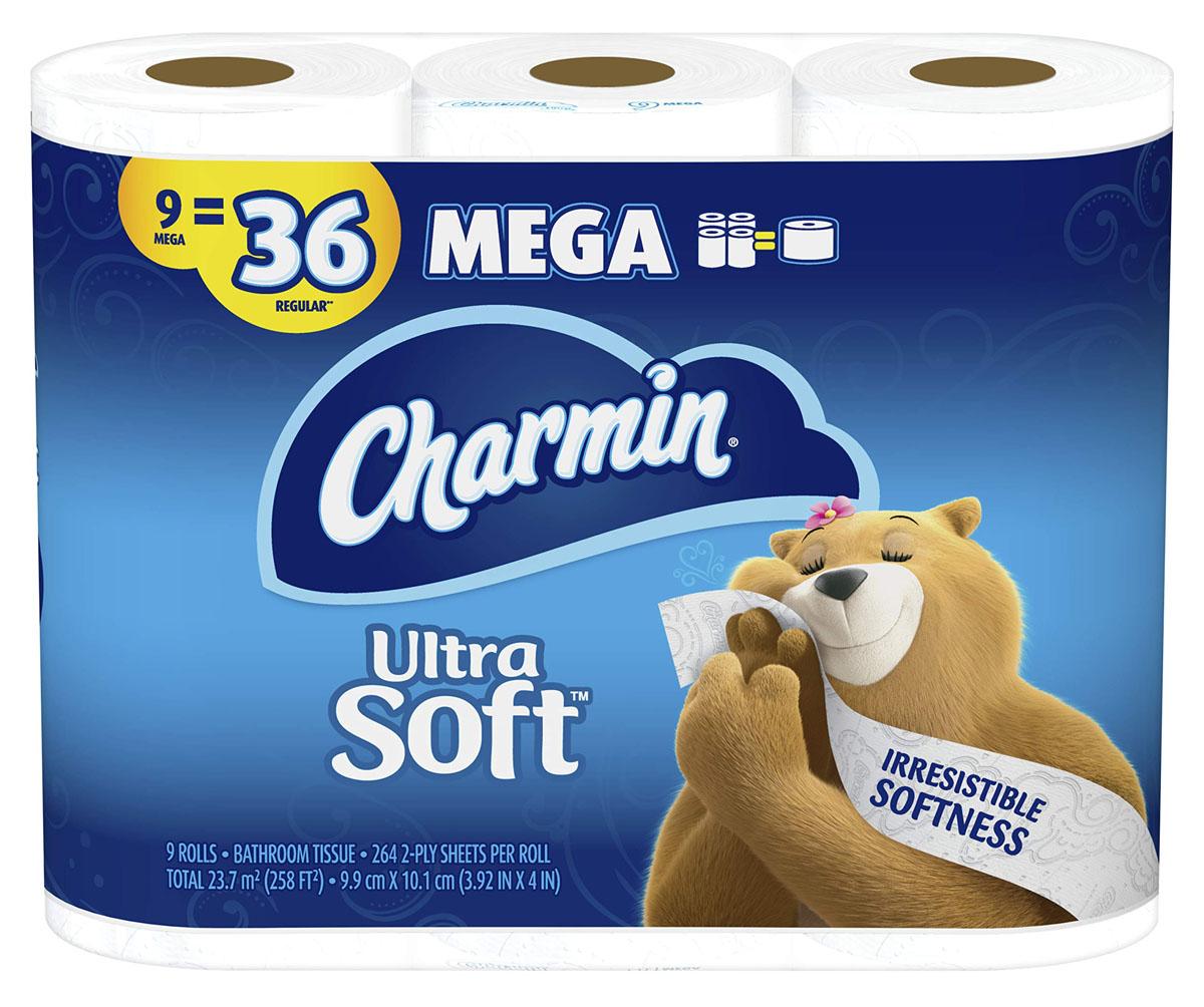 Walgreens is offering the Charmin Toilet Paper Ultra Soft, Mega Rolls, 9.0 each for the best deal.