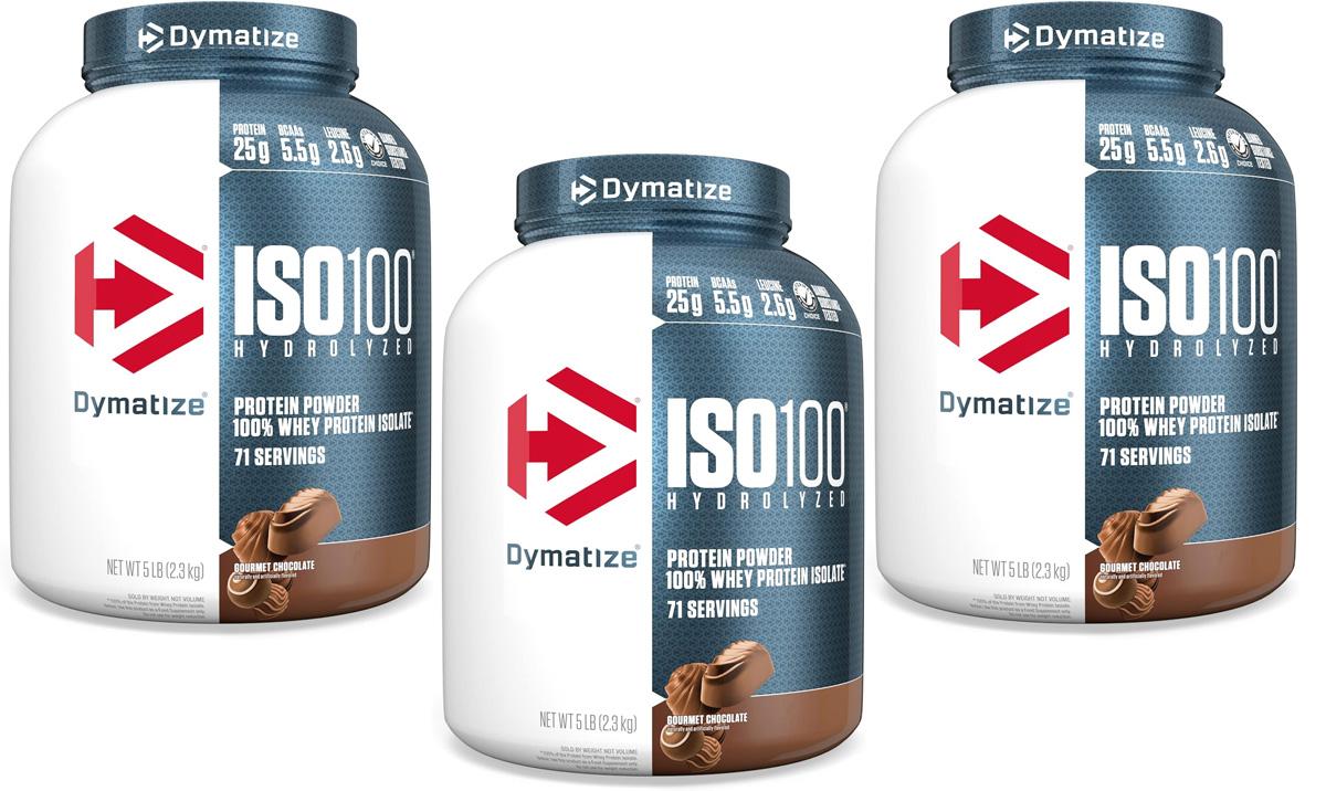 Amazon is offering the Dymatize ISO100 Hydrolyzed Protein Powder, 100% Whey Isolate Protein, 25g of Protein, 5.5g BCAAs, Gluten Free, Fast Absorbing, Easy Digesting, Gourmet Chocolate, 5 Pound x 3 for the best deal.