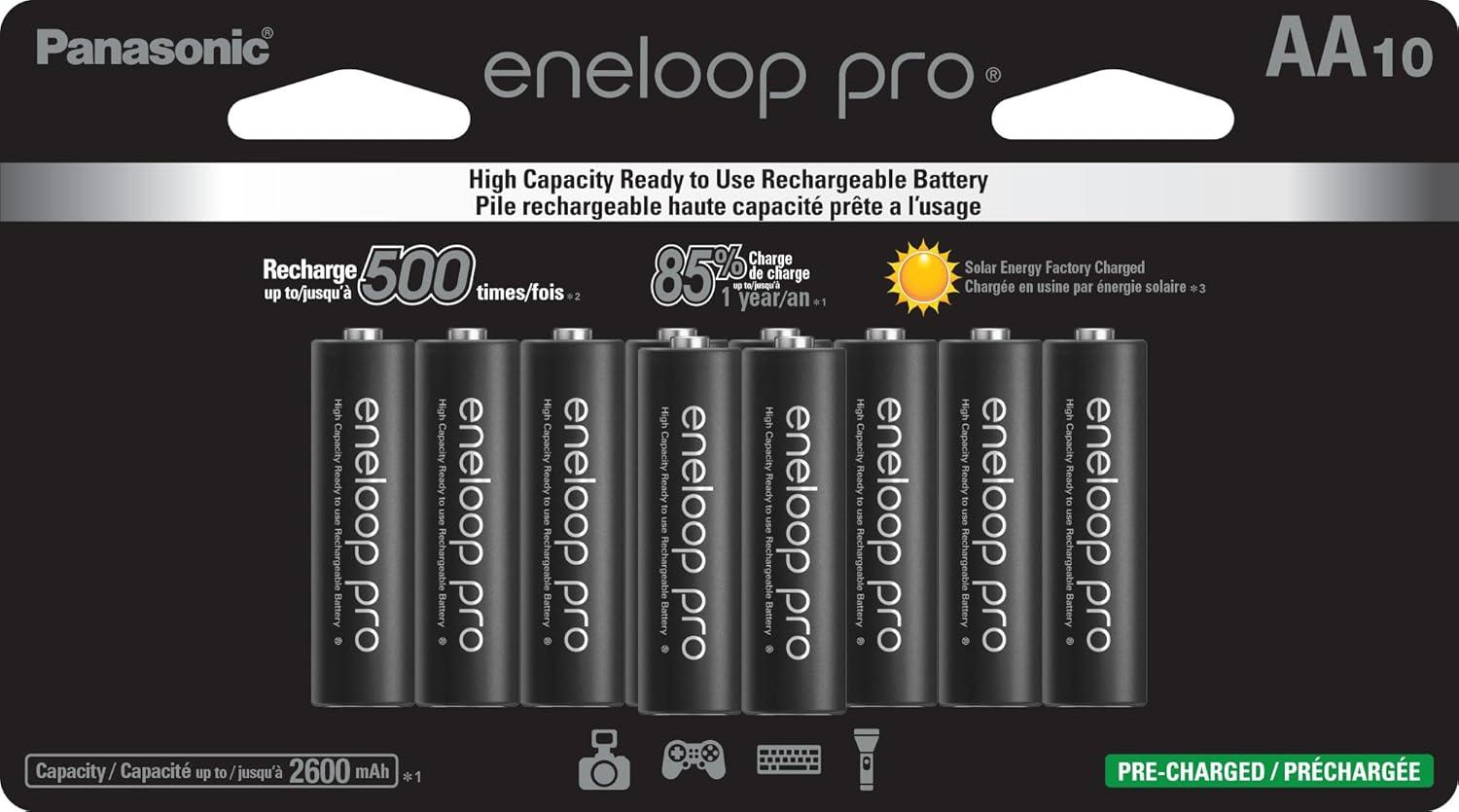 Amazon is offering the Eneloop Panasonic BK-3HCCA10FA pro AA High-Capacity Ni-MH Pre-Charged Rechargeable Batteries, 10-Battery Pack for the best deal.