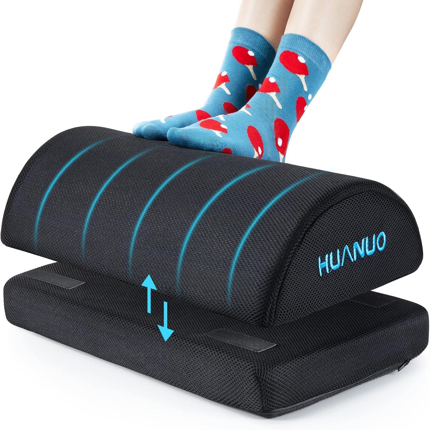 Amazon is offering the HUANUO Foot Rest for Under Desk at Work, with 2 Optional Covers for Replacing, Double Layer Adjustable Foot Rest for Office, Home, Airplane, Travel for the best deal