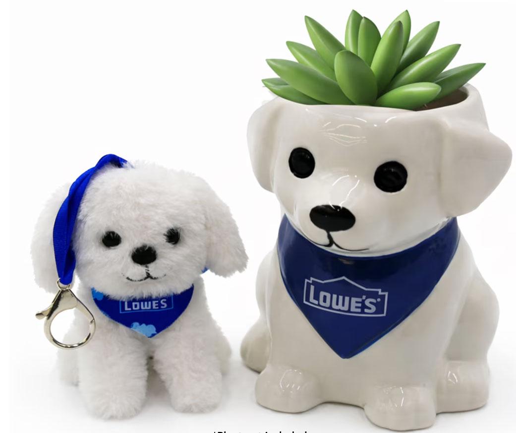The first 150 MyLowe's Rewards Members, in-store on 4/4, starting at 10 a.m. get a FREE Puppy Planter and Plushie Keychain! Limited quantities. While supplies last.