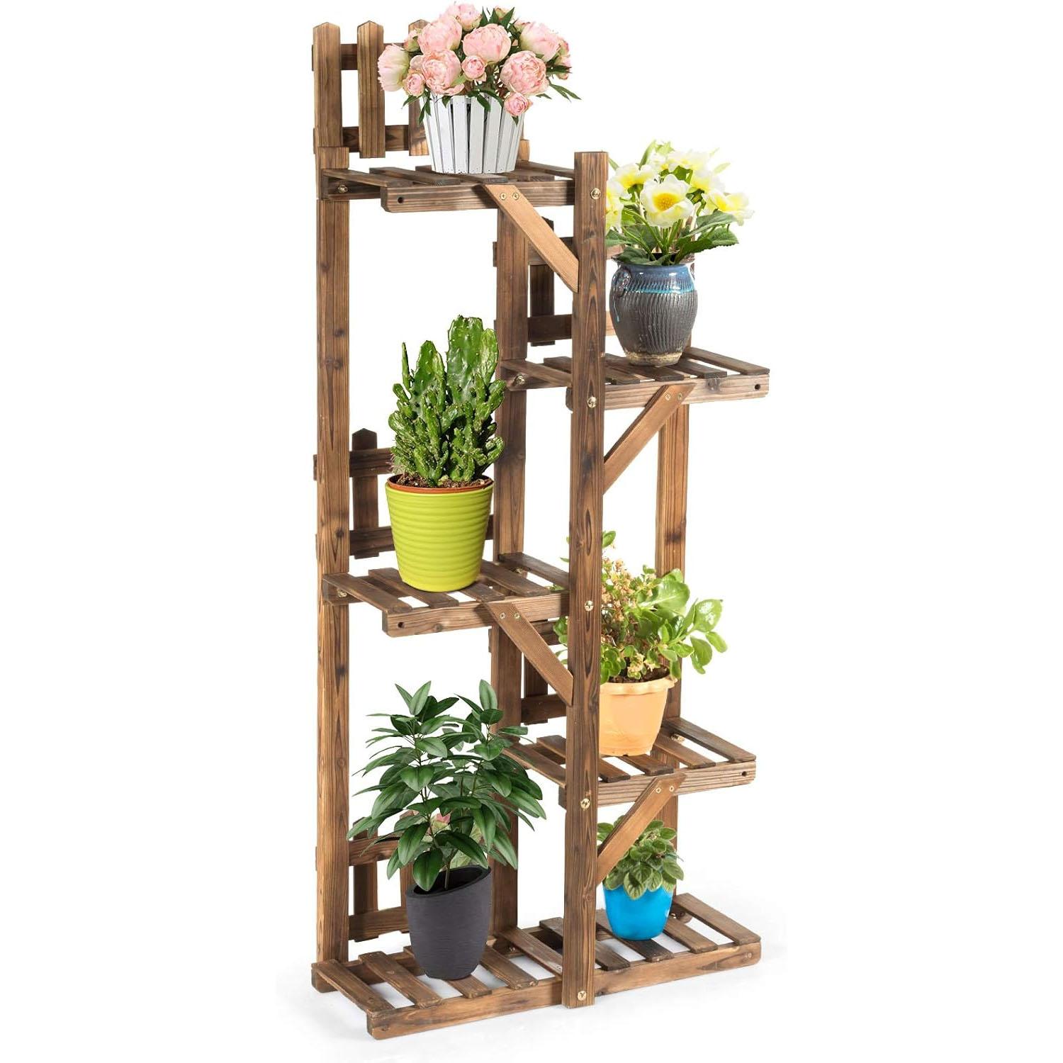 Amazon is offering the Giantex Wood Plant Stand Rack 5 Tier 6 Potted, Multiple Plant Stand Flower Pots Holder Display Shelf Rack Planter Indoor Outdoor for Garden Corner Balcony Patio Living Room for the best deal.