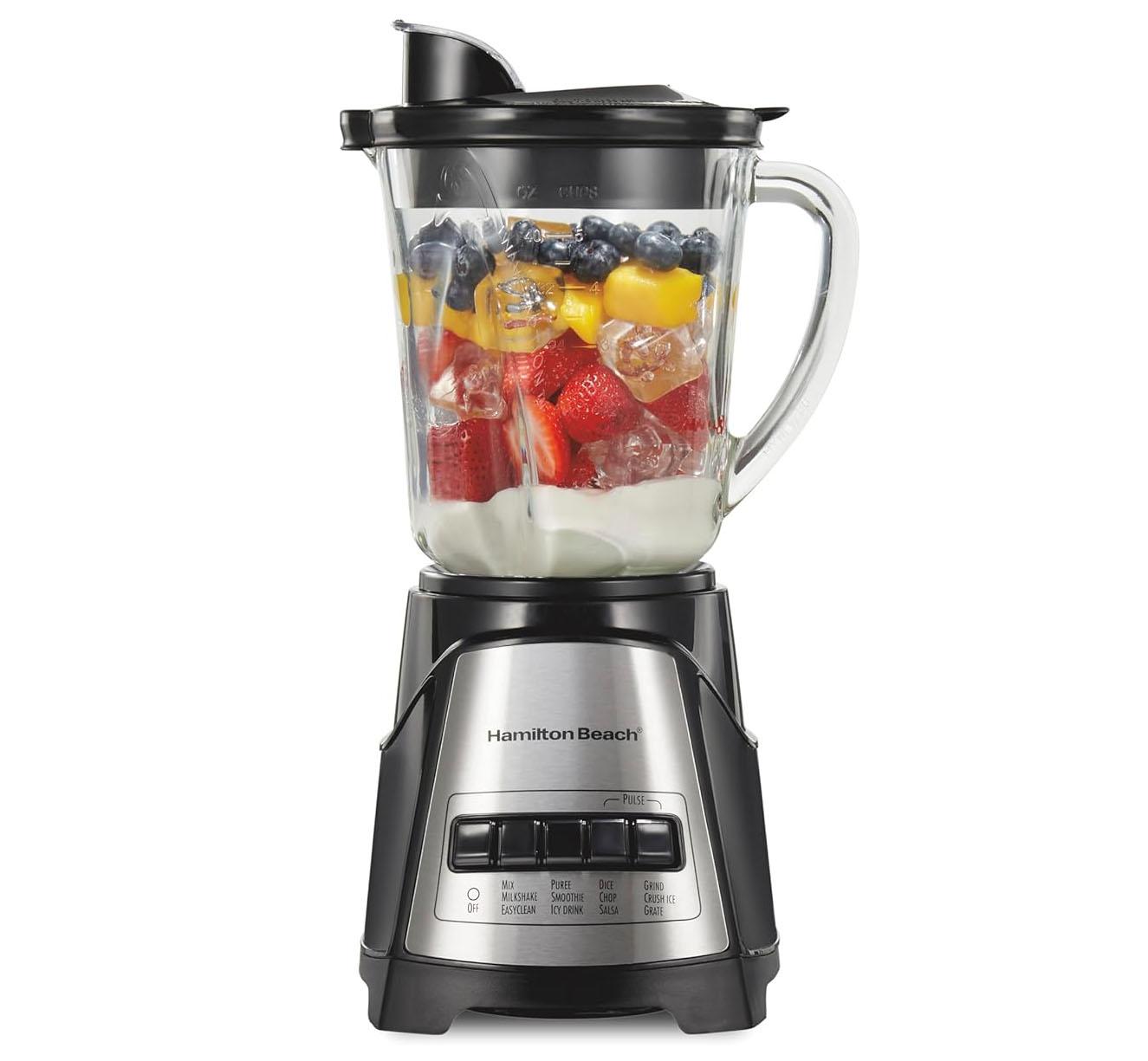 Amazon is offering the Hamilton Beach Power Elite Wave Action Blender For Smoothies, 40 Oz Glass Jar, 12 Functions Including Puree, Crush Ice, 700 Watts - Black (58148A) for the best dela.
