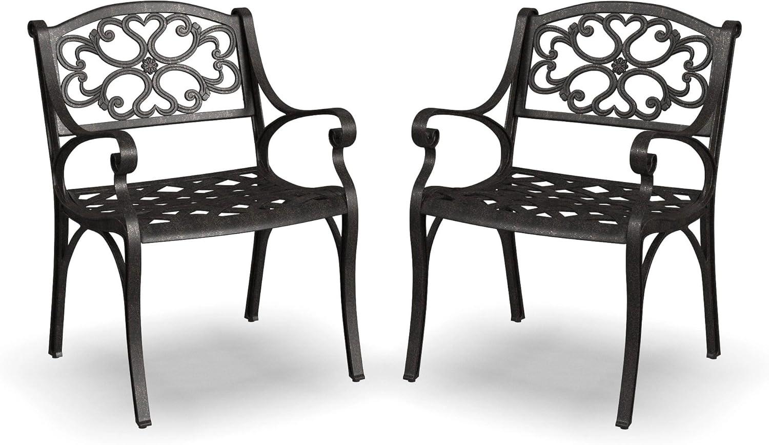 Amazon is offering the Homestyles Outdoor Cast Aluminum Chairs, 2-Pcs Set, Bronze (Set of 2) with Armrest, Patio Dining Chair Pair for Balcony, Backyard, Deck, Garden for the best deal.
