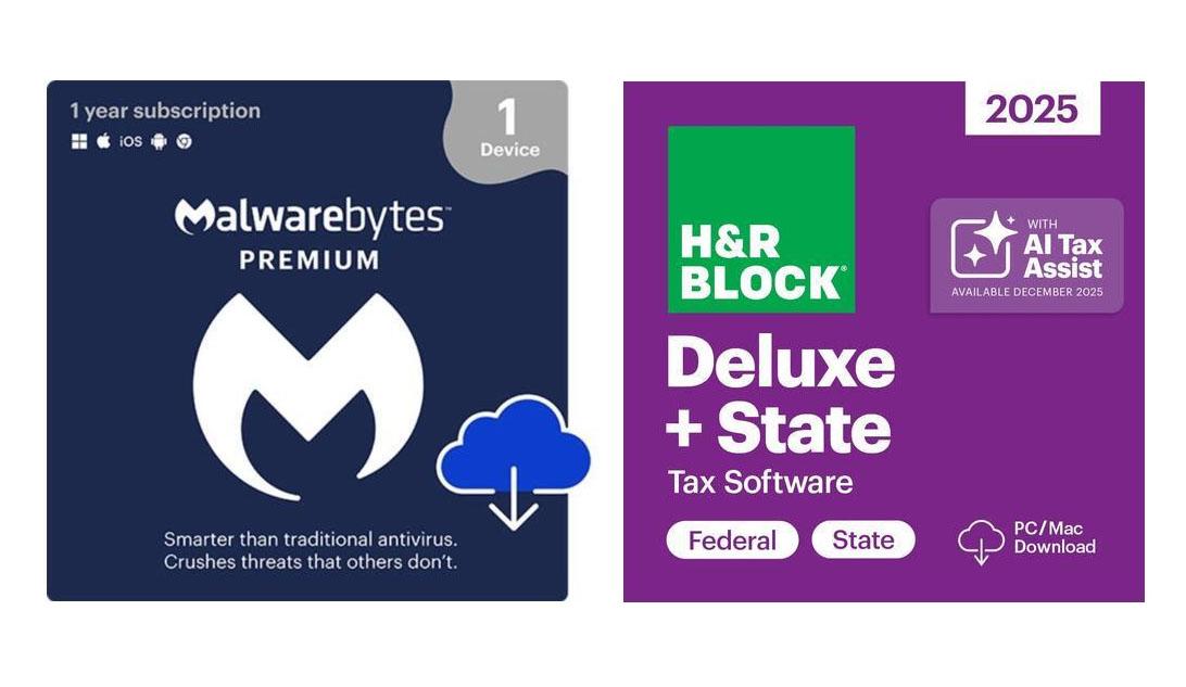 Newegg is offering the H&R Block 2025 Tax Software: Deluxe + State with 1-Year Malwarebytes Premium Software (PC/Mac Download) for the best deal.