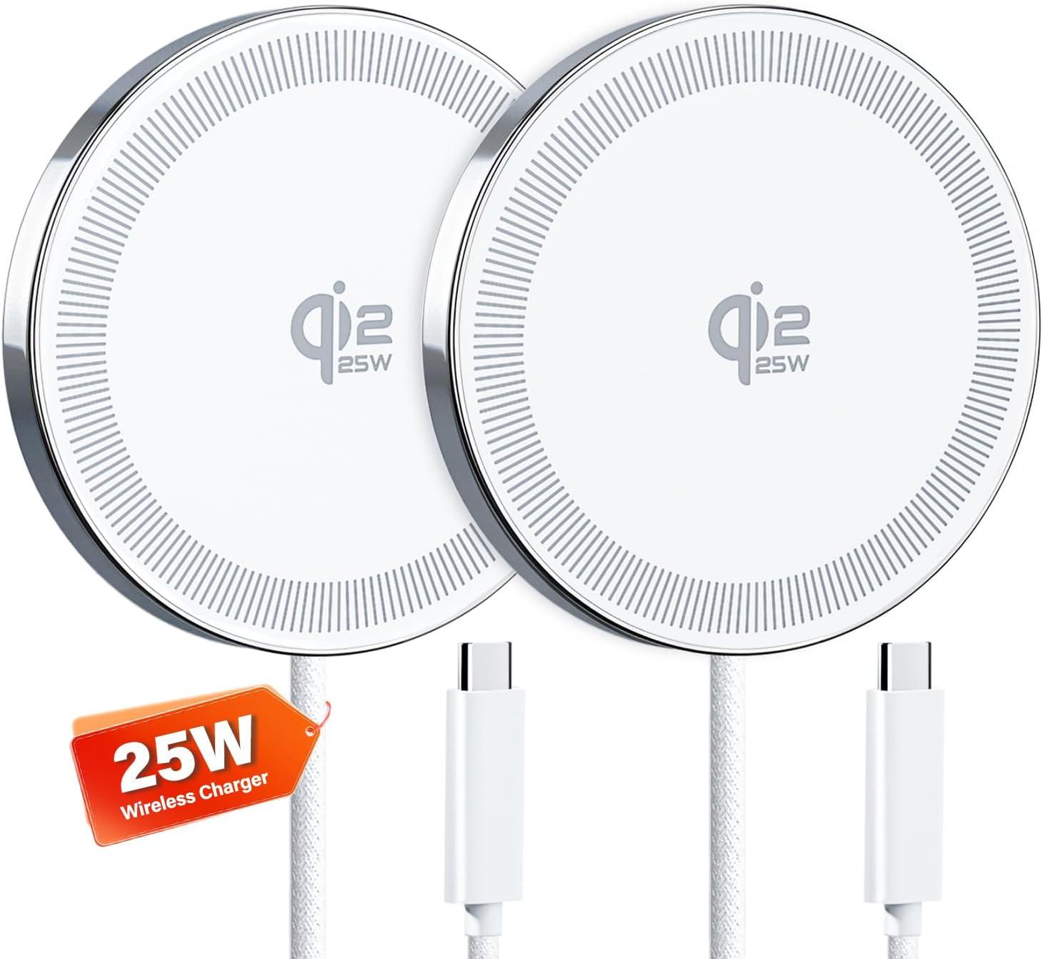 Amazon is offering the 25W Wireless Charger for MagSafe, Qi2.2 Magnetic Fast Charging Pad for iPhone 17/16/15/14/13/12 Series & AirPods, Strong Magnet, Thin & Portable Wireless Charger for Travel Home Office (White, 2Pack) for the best deal.