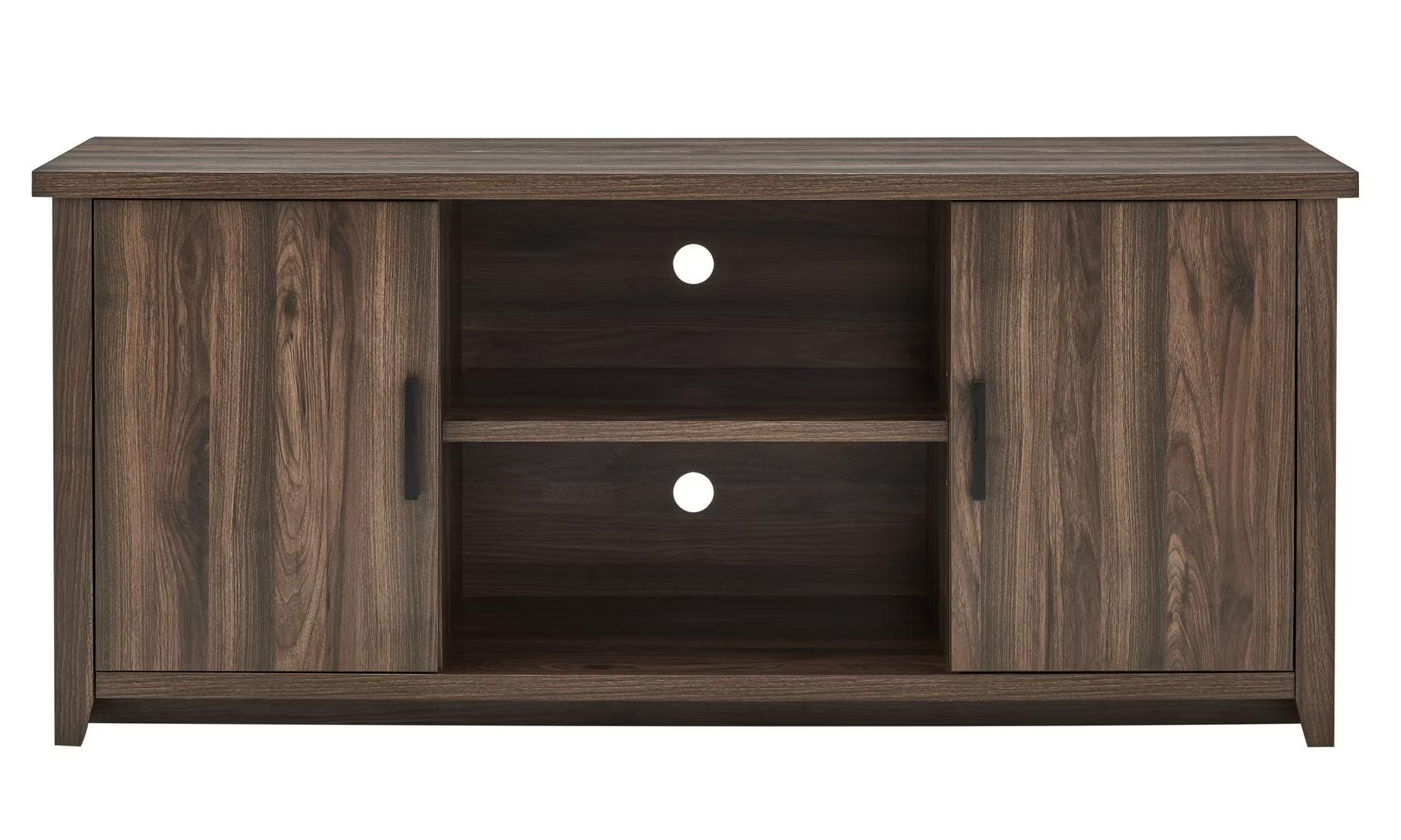 Walmart is offering the Mainstays TV Stand for TVs up to 65", Canyon Walnut for the best deal.