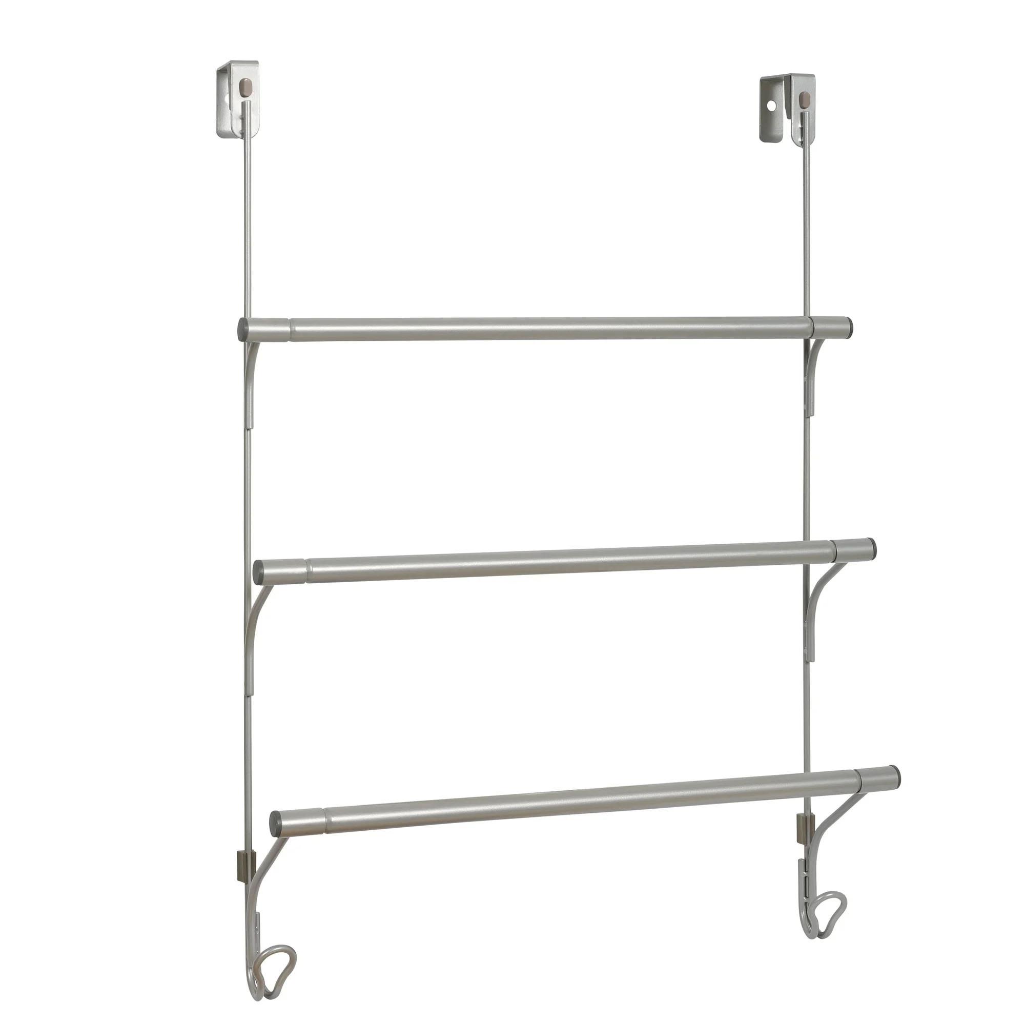 Walmart is offering the Mainstays SnugFit Over-the-Door 3-Tier Towel Bar with Hooks, Satin Nickel for the best deal.
