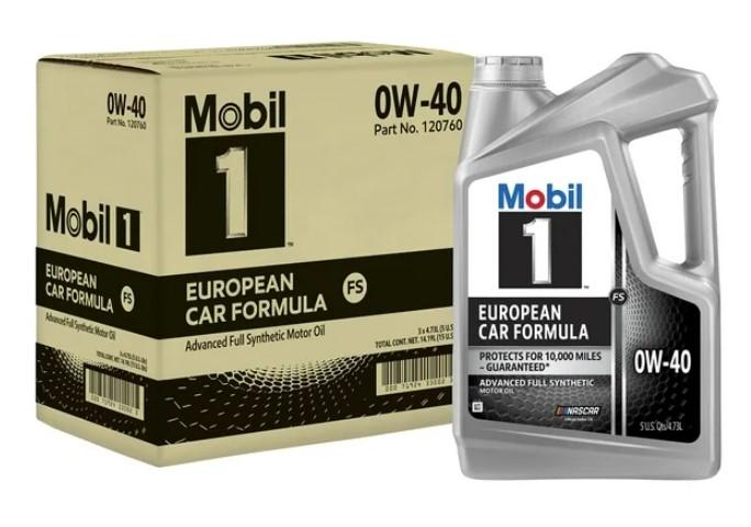 Mobil 10W-40 European Car Formula Full Synthetic Motor Oil 15qts for $63.88 ShippedWalmart is offering the 3-Pack 5-Quart Mobil 10W-40 European Car Formula Full Synthetic Motor Oil Bottles for the best deal.