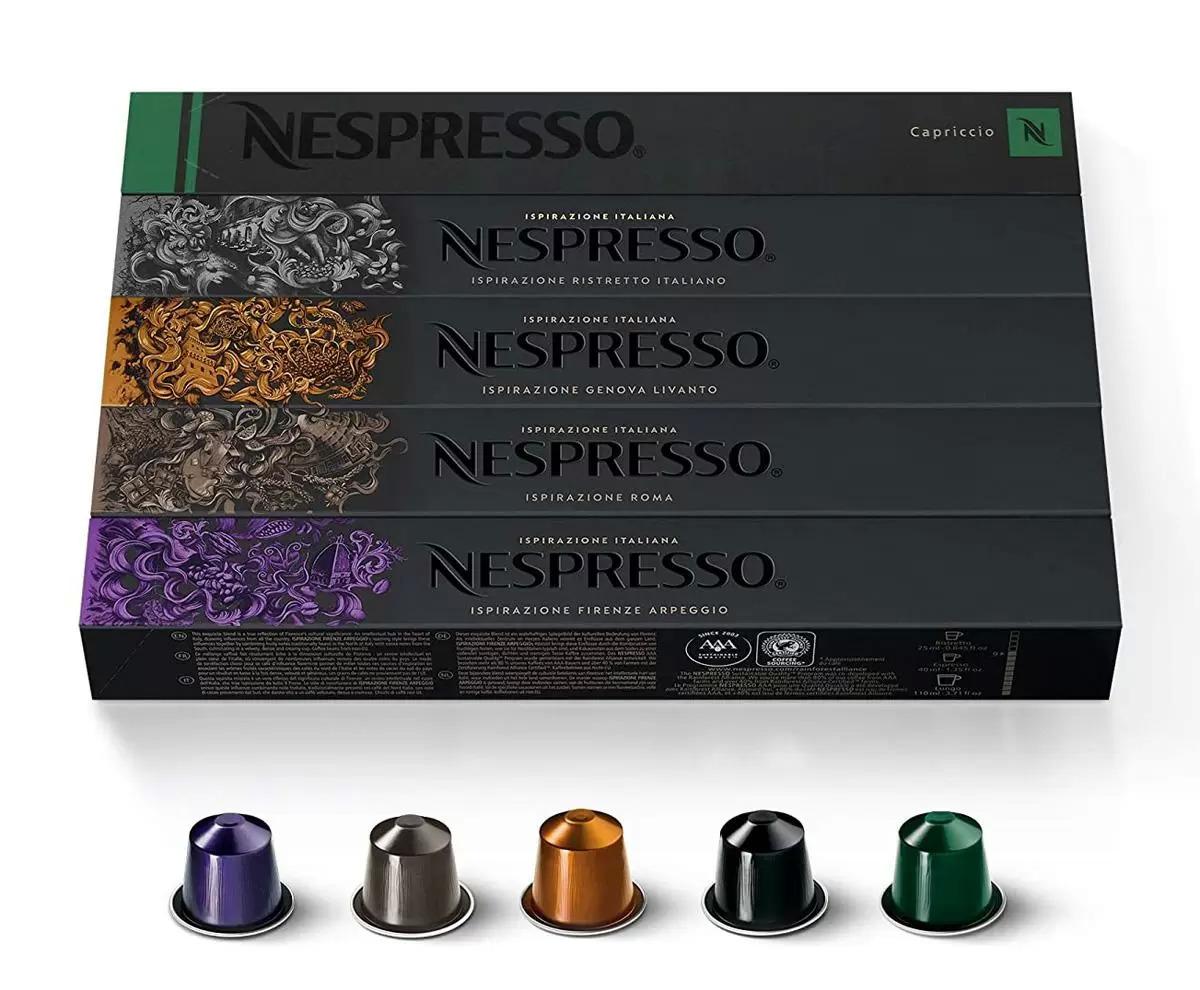 Amazon is offering the Nespresso Capsules OriginalLine, Ispirazione Variety Pack, Medium & Dark Roast Espresso Coffee, 10 Count (Pack of 5) Espresso Coffee Pods, Brews 1.35 Ounce (ORIGINALLINE ONLY) for the best deal.