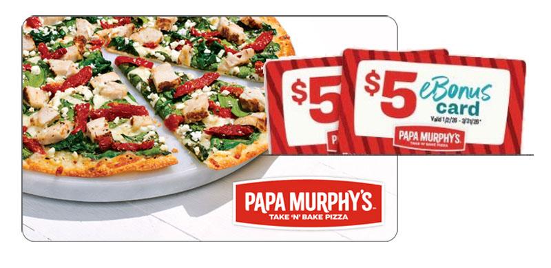 Papa Murphys is offering two $5 eBonus Cards for free when you buy a $25 Papa Murphy's Gift Card.