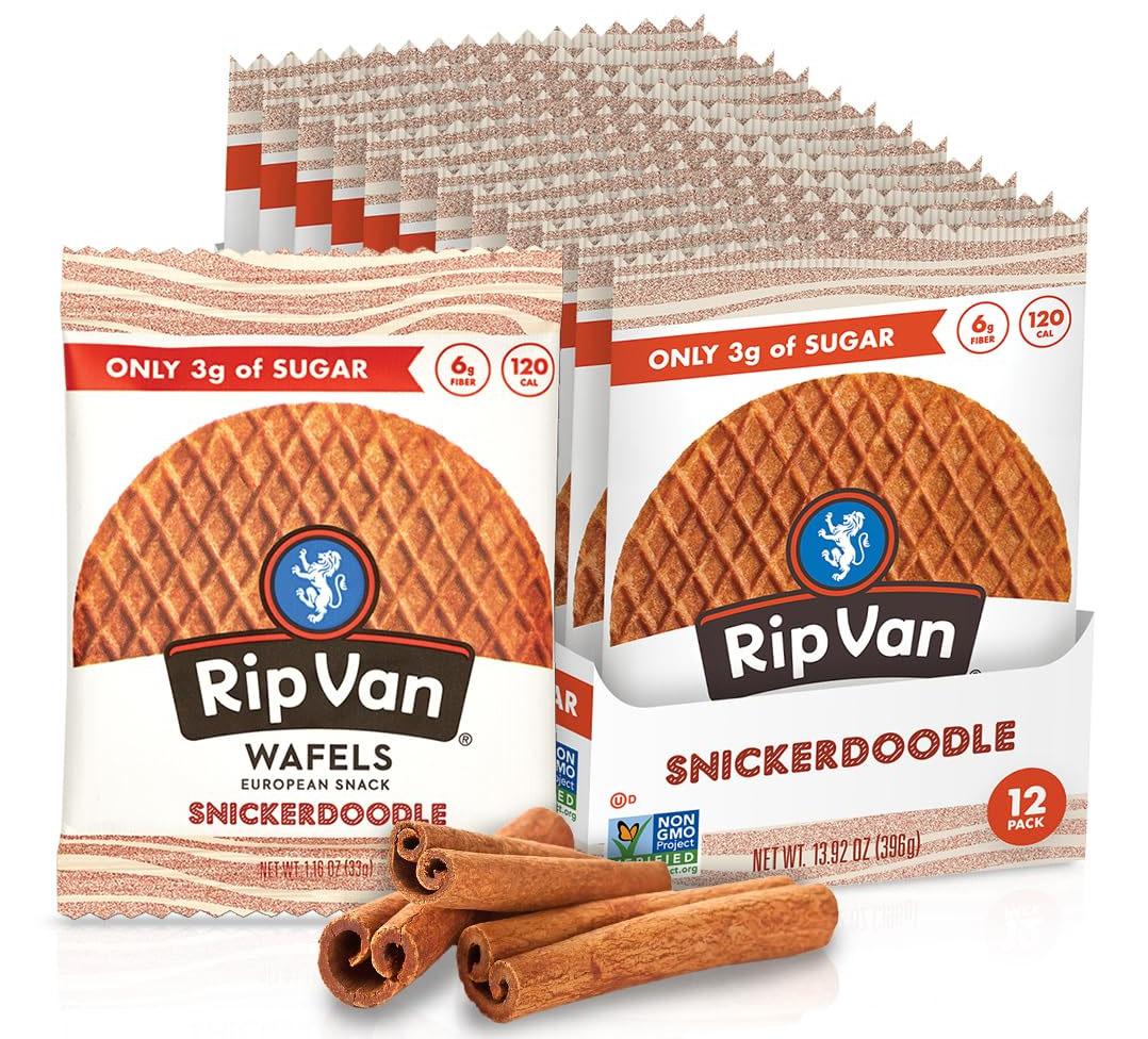 Amazon is offering the 12-Pack 1.16oz. Rip Van Wafels Snickerdoodle Stroopwafels Snack for the best deal.