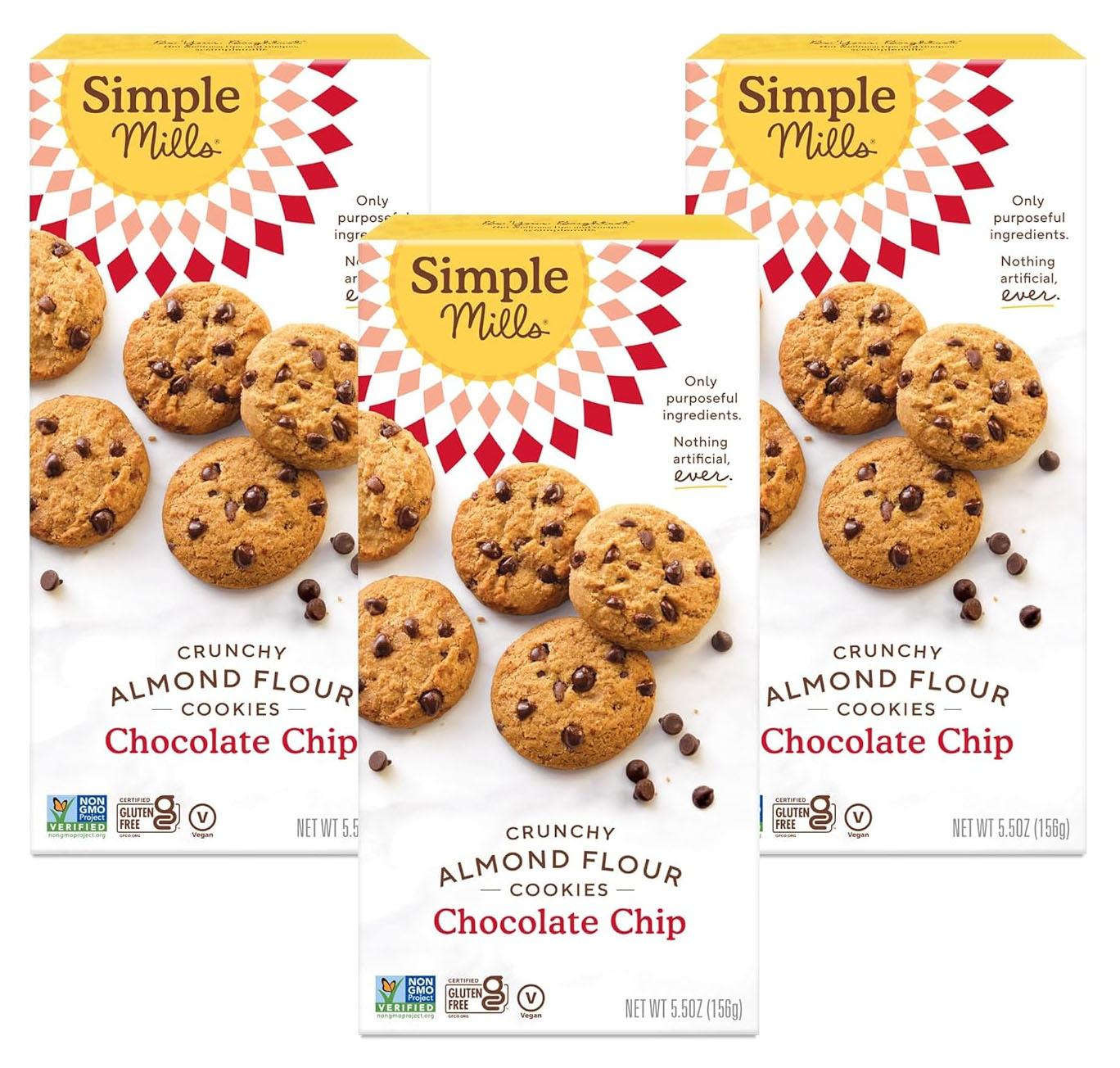 Amazon is offering the 3-Pack 5.5-Oz Simple Mills Almond Flour Crunchy Cookies (Chocolate Chip) for the best deal.