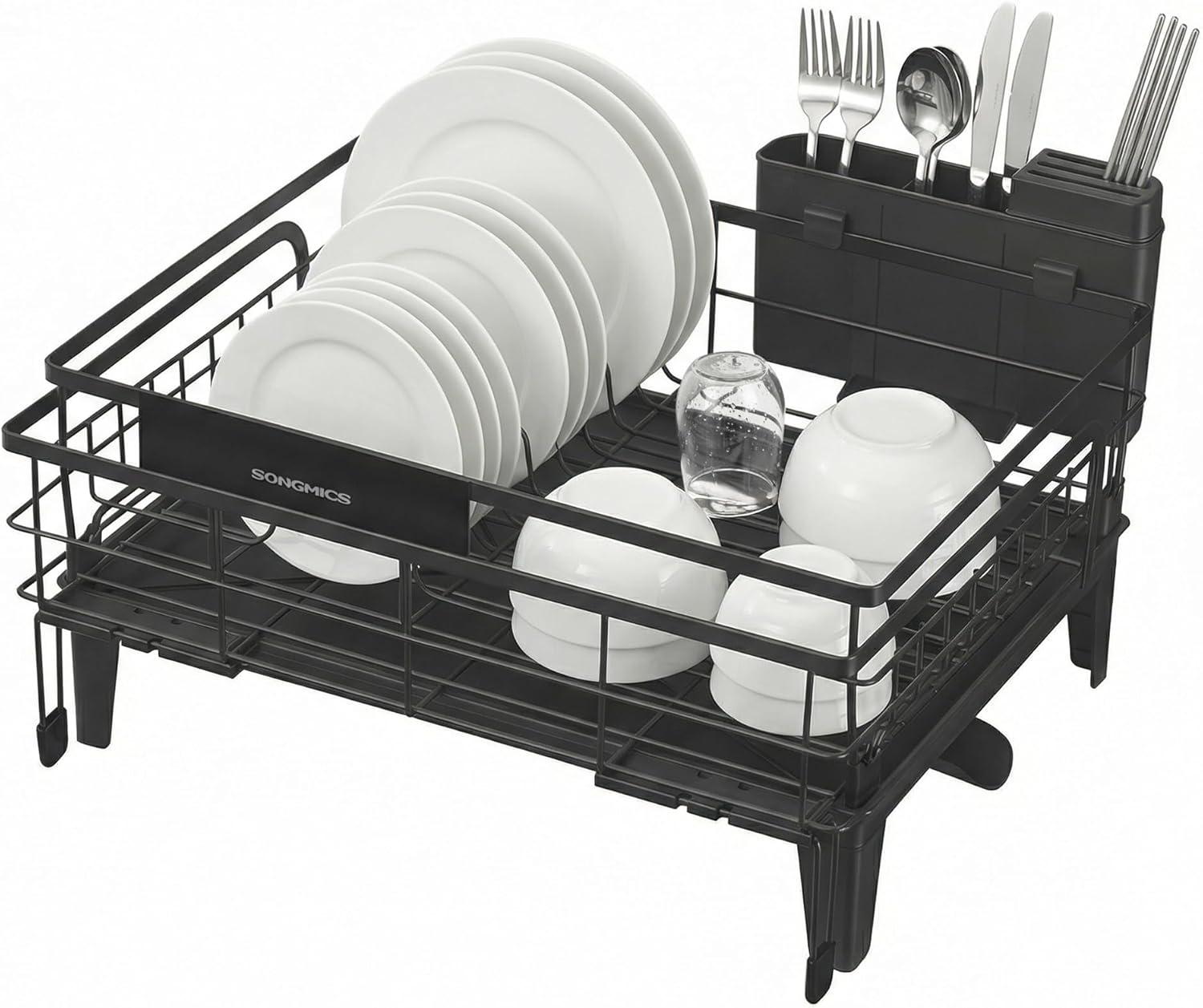 Amazon is offering the SONGMICS Dish Drying Rack, Kitchen Dish Rack with Drainboard, 360 Rotatable and Extendable Spout, with Cutlery Holder, (12.2-22) x 16.5 x 7.9 Inches, Ink Black UKCS552B01 for the best deal.