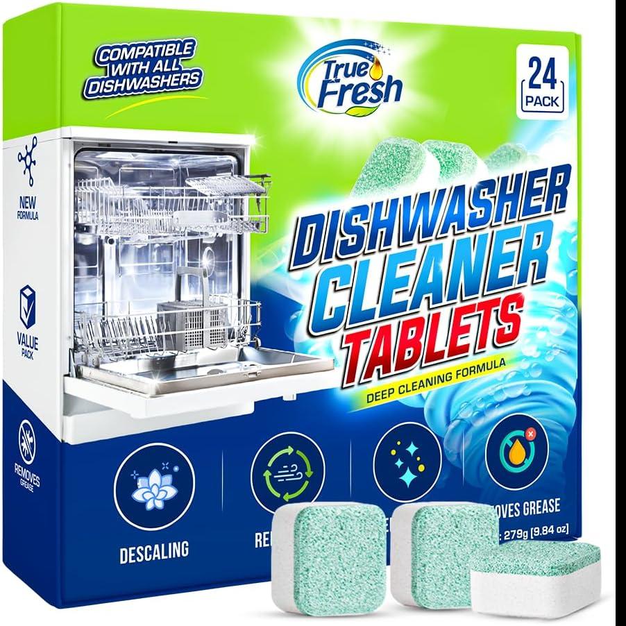 Amazon is offering the 24-Pack True Fresh Dishwasher Cleaner & Deodorizer Tablets (1-Year Supply) for the best deal.
