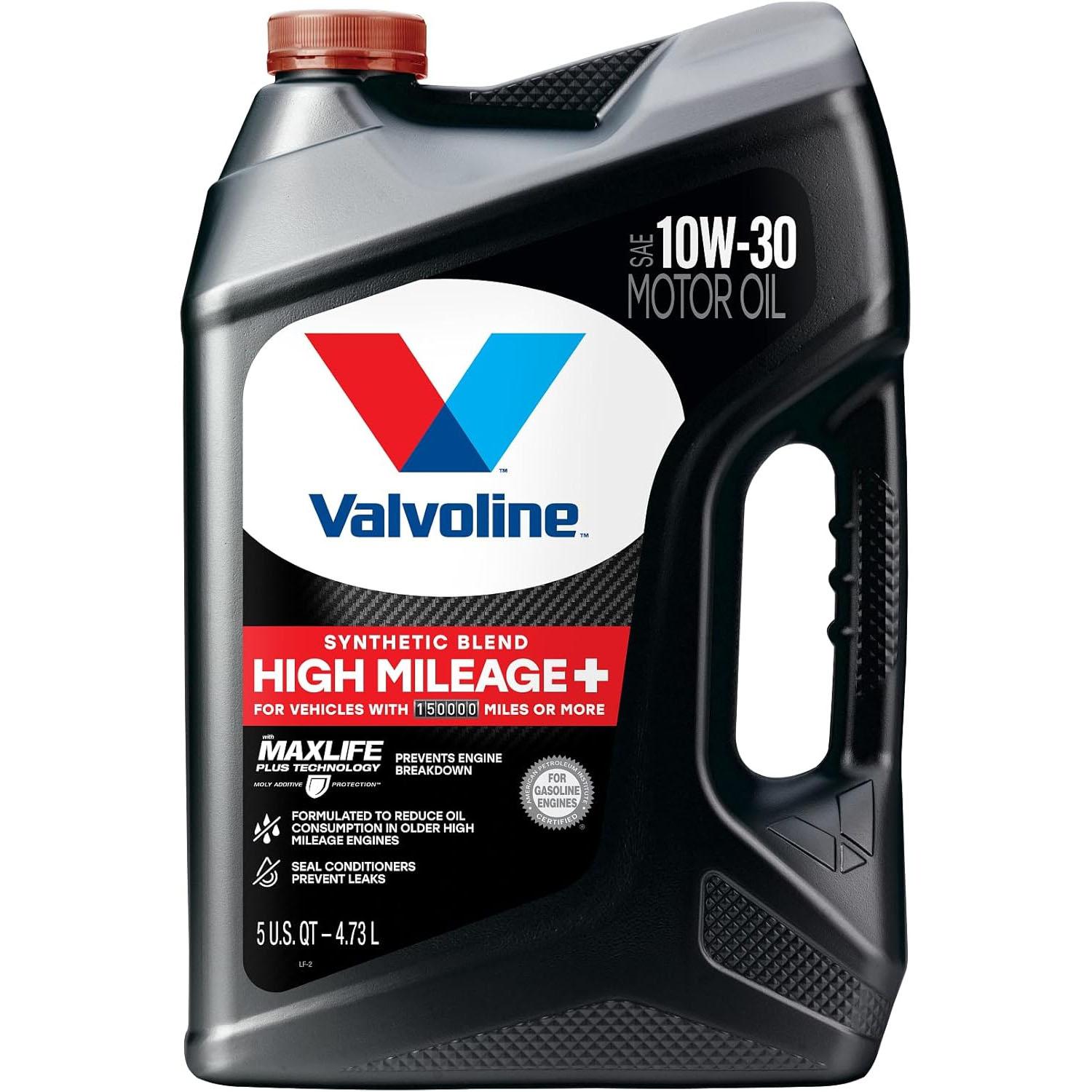 Amazon is offering the Valvoline High Mileage 150K with Maxlife Plus Technology 10W-30 Motor Oil 5 Quart for the best deal.