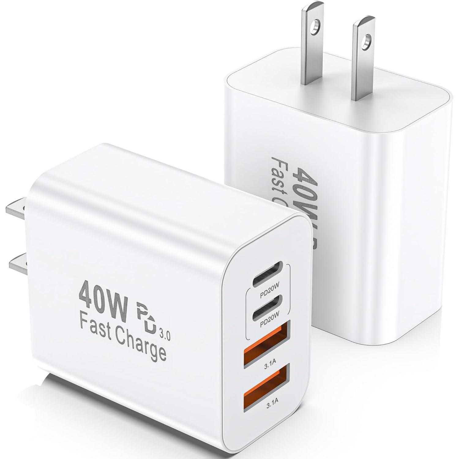 Amazon is offering the WWB USB C Charger Block, 2 Pack 40W 4-Port iPhone Charger Fast Charging Multiport PD 3.0 & QC 4.0 Double Quick Charge, Compatible with iPhone 17/16/15/14/13/12/11Pro MaxiPad, Samsung (2, Ivory White) for the best deal.