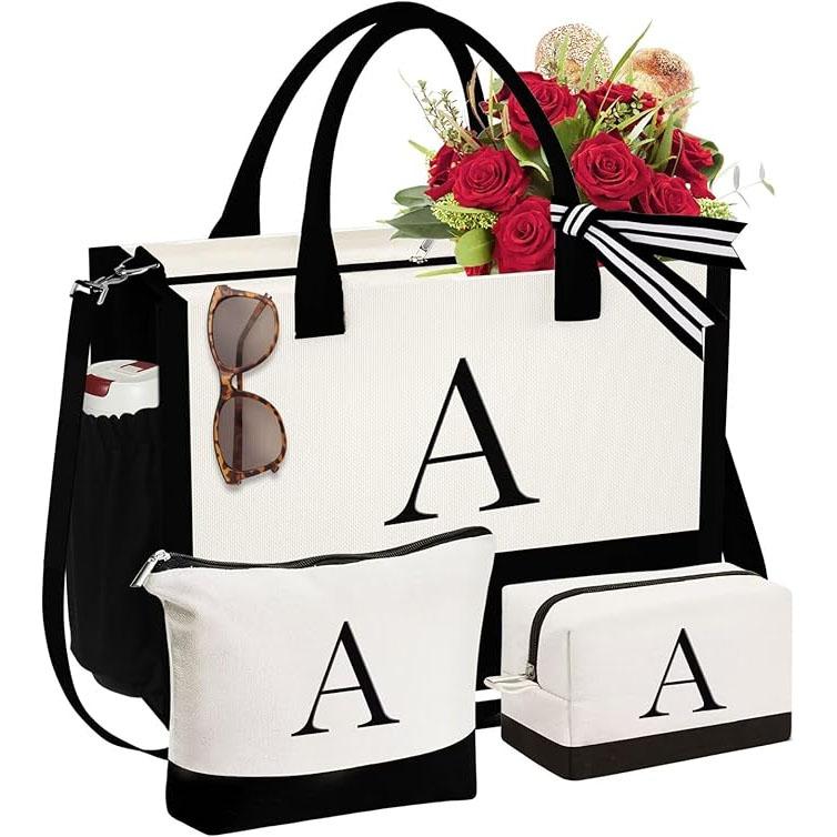 Amazon is offering the YOOLIFE Initial Canvas Tote Bag & Makeup Bag Set for the best deal.